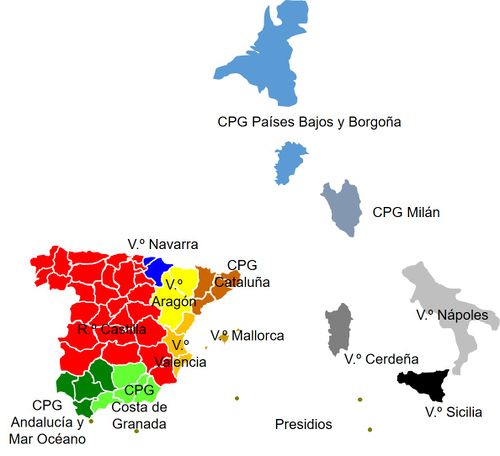 Capitán general | Lombardía | Cristoforo Madruzzo, cardenal >> Gonzalo Fernández de Córdoba, III duque de Sessa, Terranova, Andria y Sant'Angelo, I de Baena, V conde de Cabra | 1557 | ||