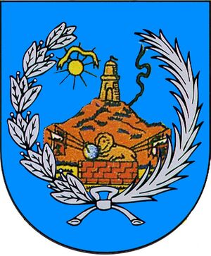 - Descripción: escudo tajado. Primero: en campo de sable (negro), una calavera contornada, en lo bajo dos tibias pasantes en aspa, barra sobre banda, todo de plata. Segundo: en campo de oro cabeza de león de sable, perfilada de oro, con garra apoyada sobre un orbe.