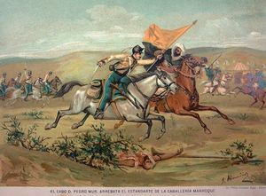 Durante la guerra de África realizó una brillante carga contra los marroquíes que culminó con el asalto a su campamento, donde el cabo Pedro Mur Escalona les arrebató un alfaquí (estandarte), siendo ascendido a sargento segundo en el mismo campo de batalla por el capitán general O'Donnel y recibiendo posteriormente la Laureada de San Fernando.