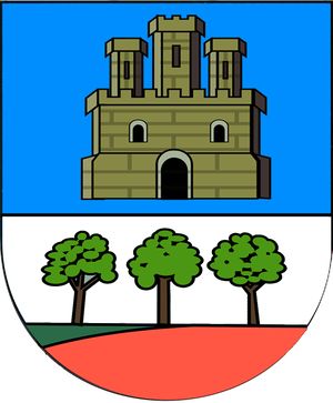 - Descripción: escudo cortado. En campo superior de azur (azul), castillo de oro con dos torres y homenaje, mazonado y adjurado del mismo color. En campo inferior de plata, tres robles de sinople aterrasados.