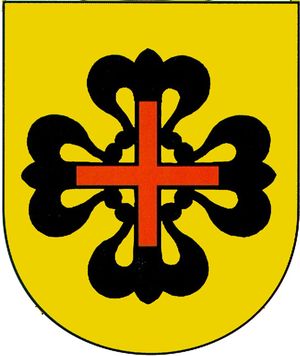 • Descripción: En campo de oro cruz flordelisada de sable cargada por cruz griega de gules.