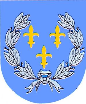 - Descripción: en campo de azur (azul), tres flores de lis de oro, perfiladas de sable, bien ordenadas. Orladas por dos ramas de laurel de plata, frutadas de lo mismo y nervadas, unidas por sus troncos y liadas en punta por lazo de gules (rojo).