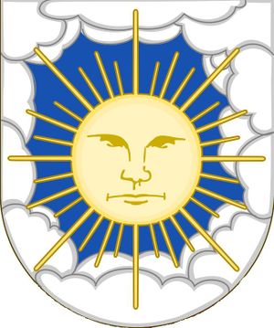 - Descripción: En campo de azur (azul), un sol figurado, de oro, orlado por nubes de plata.