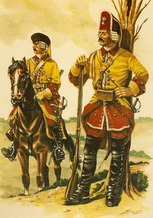 Carlos III de Borbón fue el monarca español que más se preocupó porque su ejército estuviese a la altura de los europeos. Para ello emprendió importantes reformas que modificaron la organización de los cuerpos que, poco a poco, se apartaron del modelo francés en beneficio del prusiano. Ello se debió, sin duda, a los estudios que el conde de Aranda realizó en la corte de Federico II de Prusia.